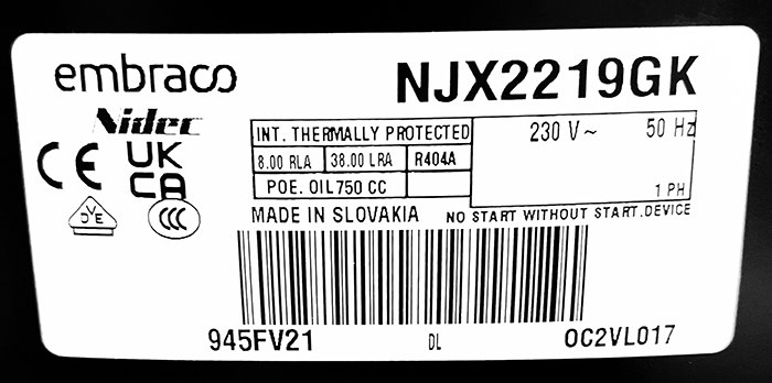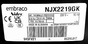 Компрессор Embraco Aspera NJX2219GK — это герметичный поршневой агрегат, предназначенный для низкотемпературного режима (LBP) с диапазоном температур испарения от -40°C до -10°C. Модель является прямым аналогом компрессора FH2480Z с пайкой, что делает её удобной заменой при ремонте и обслуживании холодильного оборудования. Благодаря высокому пусковому моменту (HST) и типу мотора CSCR компрессор обеспечивает надёжный запуск и стабильную работу в морозильных камерах, низкотемпературных витринах, бонетах и другом профессиональном оборудовании. Агрегат совместим с хладагентами R404a, R507 и R452a. Производительность модели NJX2219GK: холодопроизводительность по стандарту ASHRAE (при Ти -23.3°C, Тк +54.4°C) составляет 2069 Вт. Компрессор оснащён двигателем мощностью 2 л.с., рабочий объем цилиндра — 37.88 см³, а вес составляет 22.8 кг. Устройство рассчитано на напряжение 220-240В при частоте 50Гц. Компрессор поставляется под артикулом NJX2219GK и произведён брендом Embraco Aspera, известным своей надёжностью и долговечностью. Полная техническая документация доступна для скачивания. Выбирая NJX2219GK, вы получаете мощное решение для низкотемпературного холодильного оборудования, которое выступает в качестве полноценной замены FH2480Z, сочетая в себе высокий пусковой момент, отличную производительность и адаптацию к современным хладагентам.