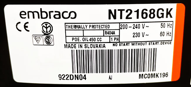 Компрессор Embraco Aspera NT2168GK — это герметичный поршневой агрегат, предназначенный для низкотемпературного режима (LBP) с диапазоном температур испарения от -40°C до -10°C. Модель является надёжным решением для профессионального низкотемпературного оборудования: морозильных камер, низкотемпературных витрин, бонетов и льдогенераторов. Благодаря высокому пусковому моменту (HST) и типу мотора CSIR компрессор обеспечивает уверенный запуск и стабильную работу даже при экстремальных нагрузках. Агрегат совместим с хладагентами R404a, R507 и R452a. Производительность модели NT2168GK: холодопроизводительность по стандарту ASHRAE (при Ти -23.3°C, Тк +54.4°C) составляет 642 Вт, а по стандарту EN12900 (при Ти -35°C, Тк +40°C) — 354 Вт. Коэффициент холодопроизводительности — 1.28 (ASHRAE) и 1.03 (EN12900). Рабочий объем цилиндра — 14.5 см³, а вес компрессора составляет 17 кг. Устройство рассчитано на напряжение 220-240В при частоте 50Гц. Компрессор поставляется под артикулом NT2168GK и произведён брендом Embraco Aspera, известным своей надёжностью и долговечностью. Полная техническая документация доступна для скачивания. Выбирая NT2168GK, вы получаете надёжное и энергоэффективное решение для низкотемпературного холодильного оборудования, сочетающее в себе высокий пусковой момент и адаптацию к современным хладагентам.