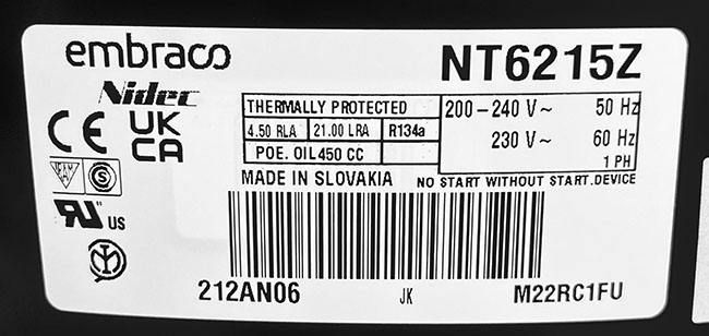Высокотемпературный, R134a, 1607 Вт, 17.39 см3, HBP 7.2°C, -15..10°C, 220-240В, 50Гц