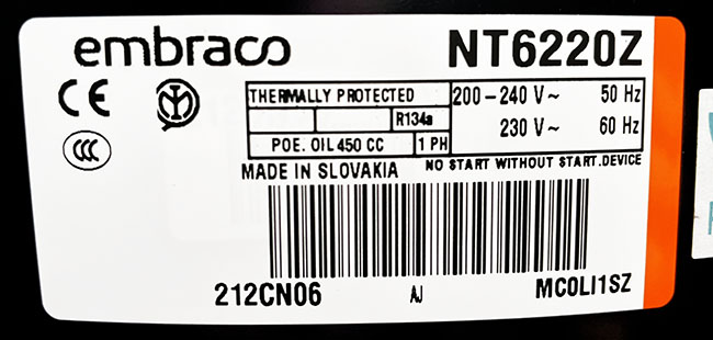 Компрессор Embraco Aspera NT6220Z — это герметичный поршневой агрегат, работающий на хладагенте R134a. Модель предназначена для высокотемпературного режима (HBP) с диапазоном температур испарения от -15°C до +10°C, что делает её отличным выбором для льдогенераторов, холодильных комнат и другого высокотемпературного холодильного оборудования. Благодаря высокому пусковому моменту (HST) и типу мотора CSIR компрессор обеспечивает надёжный запуск и стабильную работу. Производительность модели NT6220Z: холодопроизводительность по стандарту ASHRAE (при Ти +7.2°C, Тк +54.4°C) составляет 2016 Вт, а по стандарту EN12900 (при Ти +5°C, Тк +50°C) — 1744 Вт. При более низком испарении (Ти -10°C, Тк +45°C) производительность достигает 1011 Вт. Компрессор оснащён двигателем мощностью 3/4 л.с., рабочий объем цилиндра — 22.4 см³, а вес составляет 17.2 кг. Устройство рассчитано на напряжение 220-240В при частоте 50Гц. Компрессор поставляется под артикулом NT6220Z и произведён брендом Embraco Aspera, известным своей надёжностью и долговечностью. Полная техническая документация доступна для скачивания. Выбирая NT6220Z, вы получаете производительное и энергоэффективное решение для льдогенераторов, холодильных комнат и другого высокотемпературного оборудования, сочетающее в себе высокий пусковой момент и отличную адаптацию к хладагенту R134a.
