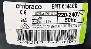 Компрессор Embraco EMT6144GK — это герметичный поршневой агрегат, предназначенный для среднетемпературного режима (MBP) с диапазоном температур испарения от -20°C до +10°C. Модель является компактным и надёжным решением для профессионального среднетемпературного оборудования: холодильных витрин, охлаждаемых столов, гастроемкостей и другого торгового оборудования. Благодаря высокому пусковому моменту (HST) и типу мотора CSIR компрессор обеспечивает уверенный запуск и стабильную работу. Агрегат совместим с хладагентами R404a, R507 и R452a. Производительность модели EMT6144GK: холодопроизводительность по стандарту ASHRAE (при Ти +7.2°C, Тк +54.4°C) составляет 679 Вт, а по стандарту EN12900 (при Ти -10°C, Тк +45°C) — 378 Вт. Коэффициент холодопроизводительности — 2.39 (ASHRAE) и 1.9 (EN12900). Компрессор оснащён двигателем мощностью 1/4 л.с., рабочий объем цилиндра — 3.97 см³, а вес составляет всего 7.8 кг. Устройство рассчитано на напряжение 220-240В при частоте 50Гц. Компрессор поставляется под артикулом EMT6144GK (51330621497ZA) и произведён брендом Embraco, известным своей надёжностью и долговечностью. Полная техническая документация доступна для скачивания. Выбирая EMT6144GK, вы получаете компактное, лёгкое и энергоэффективное решение для среднетемпературного холодильного оборудования, сочетающее в себе высокий пусковой момент и адаптацию к современным хладагентам.