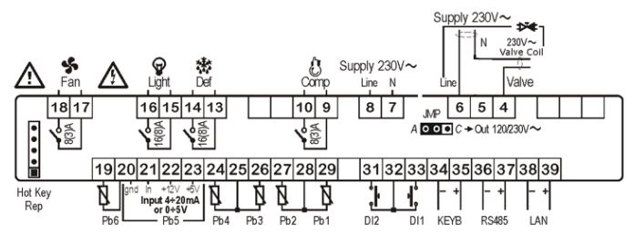 Dixell XM660K/XM669K можно включить в локальную сеть из до 8 различных секций, которые в зависимости от программы могут работать автономно или в координации, выполняя команды от других секций. Контроллер оборудован разъемом HOTKEY для удобного программирования с помощью электронного ключа. Сетевой интерфейс RS485 с протоколом ModBUS-RTU позволяет легко интегрировать устройство в системы мониторинга, например Dixell XWEB. В качестве опций доступны часы реального времени (RTC) и аналоговый выход.