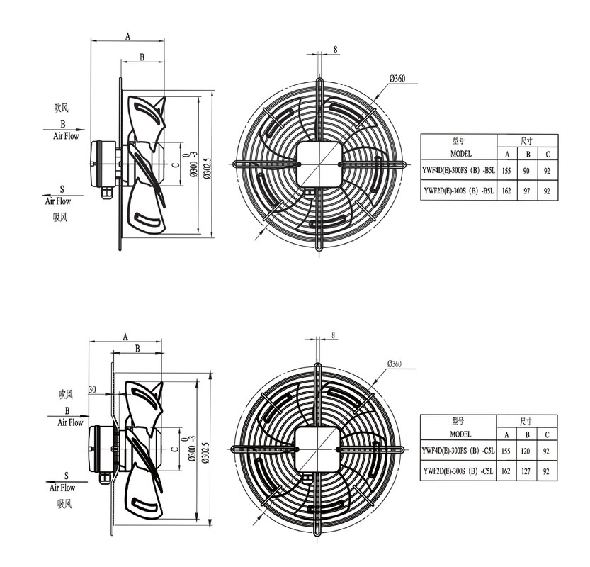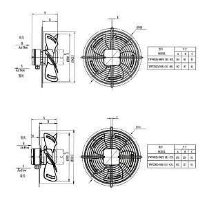 Вентилятор асинхронный осевой с внешним ротором переменного тока в сборе с защитной решеткой